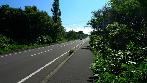 後來發現,沿路散布了不少休閒設施,有溫泉、球場、體育場、高爾夫球場,我還是沒有遠離人煙,只是都沒看到人!說真的,這麼大熱天下午誰會在外面閒晃?在高爾夫球場外圍休息時(其實是為了找個垃圾桶丟口香糖),耳邊聽到不少人在說笑,卻只聞其聲不見其人。