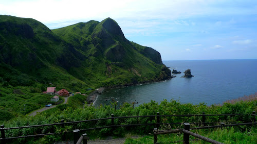 左邊的紅瓦屋頂建築是非常有名的禮文島青年旅社桃岩莊。