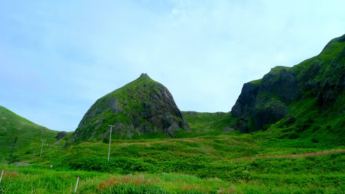 可能是海岸線上多崎嶇山岩,禮文的環島道路並沒有全線沿海。從島北要往島南,必須先言來時路繞回,從島中央的橫貫線翻過山,才能抵達島的西南。山並不高,但須要經過幾條隧道。